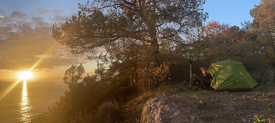 Annelouc: "We zijn in Fethiye begonnen en we liepen richting Antalya. We zijn 3 weken onderweg geweest, sliepen in een klein tentje en hadden alles op ons rug; kleren, water en eten. Het toeristenseizoen is nu echt over in Turkije, dus het is overal heel rustig. We zijn onderweg maar een paar andere wandelaars tegengekomen. Omdat we onze rugzakken zo licht mogelijk wilden houden bestond ons eten voornamelijk uit gedroogde vruchten, noodles, snickers & bonen.