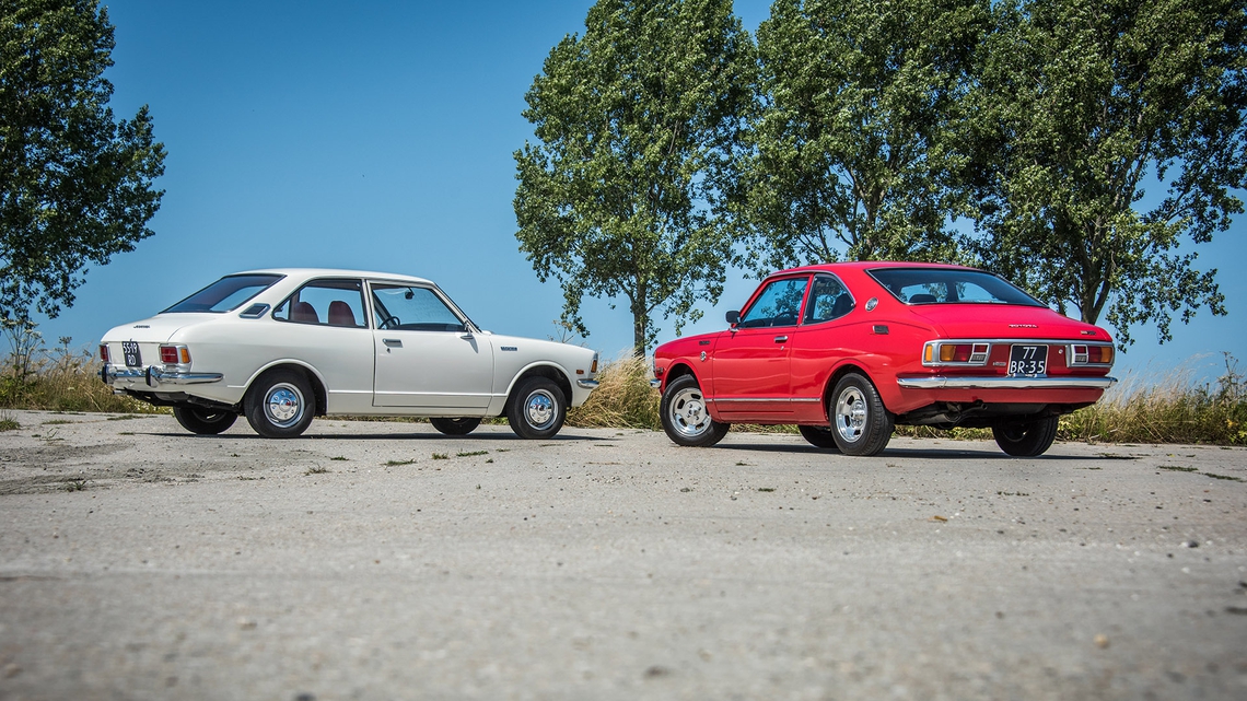 Toyota-Corolla-KE20-exterieur-zijkant-wit-driekwart-voor-rood-met-broers-voor-eigen-auto.jpg