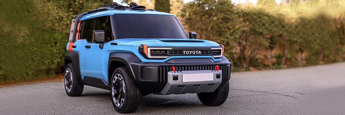 De Toyota Compact Cruiser EV past perfect bij de levensstijl van jonge, actieve stedelingen, die hun vrije tijd graag besteden in de buitenlucht. Tegelijkertijd bouwt het design voort op de historie die Toyota heeft op het gebied van 4x4-voertuigen maar dan met elektrische aandrijving. Het robuuste en stoere exterieur van de Compact Cruiser EV ontleent een aantal stijlkenmerken aan de legendarische Toyota Land Cruiser van de eerste generatie, waaronder een iconisch offroad silhouet en eenvoudige, sterke carrosserie-elementen.